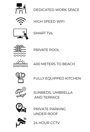 We villa features two cozy bedrooms on the second floor, both with balcony access and en-suite bathrooms. Samsung Smart TV and Air Conditioning.